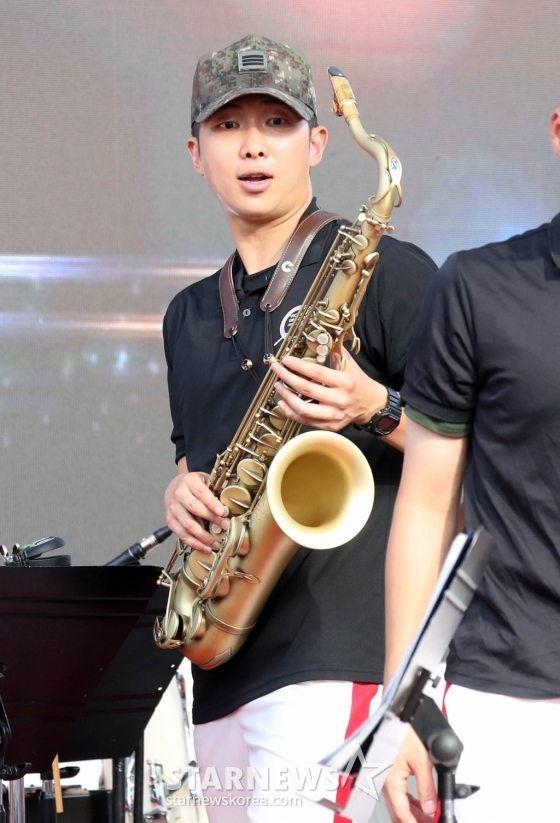 RM (Kim Nam-joon) do BTS, que está servindo no exército, está se preparando para o ensaio de palco como membro da Banda Militar da 15ª Divisão no '2024 Hwacheon Tomato Festival' em Hwacheon-gun, Gangwon-do, à tarde do 2º. 2024.08.02