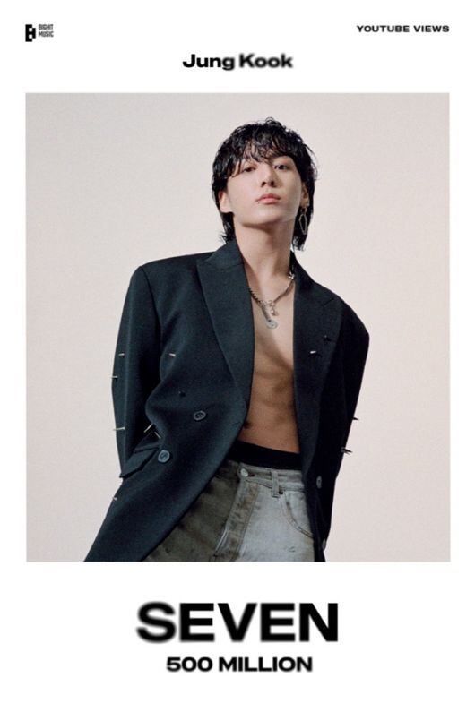 O número de visualizações no YouTube do videoclipe do primeiro single solo de BTS Jungkook, 'Seven (feat. Latto)', que foi lançado simultaneamente mundialmente em julho de 2023, ultrapassou 500 milhões de visualizações por volta das 3h53 do dia 22. Esta é a primeira música solo de Jungkook a ultrapassar 500 milhões de visualizações.