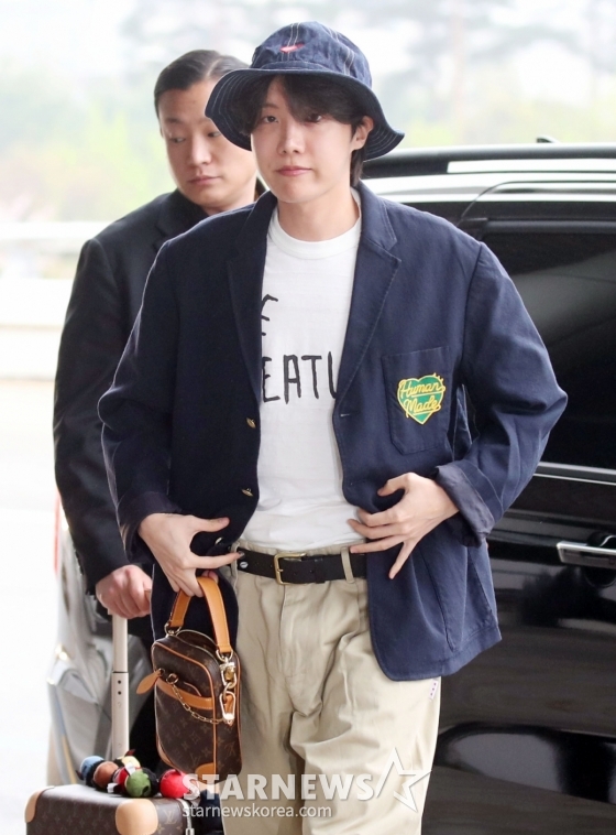 J-Hope, do BTS, embarcará para um show no Japão via Aeroporto Internacional de Gimpo na manhã do dia 18. 2025.04.18