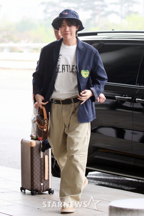 J-Hope, do BTS, embarcará para um show no Japão via Aeroporto Internacional de Gimpo na manhã do dia 18. 2025.04.18