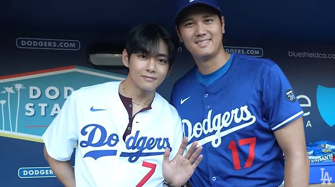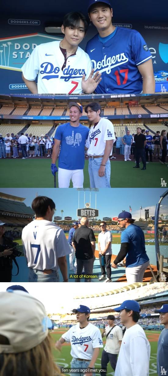 No vídeo divulgado, V foi o primeiro a encontrar Shohei Ohtani no banco de reservas, cumprimentou-o e tirou uma foto comemorativa. Os dois se curvaram e apertaram as mãos desde o momento em que se conheceram, e mesmo quando tiraram a foto comemorativa e se separaram, não se esqueceram de abaixar a cintura e a cabeça.